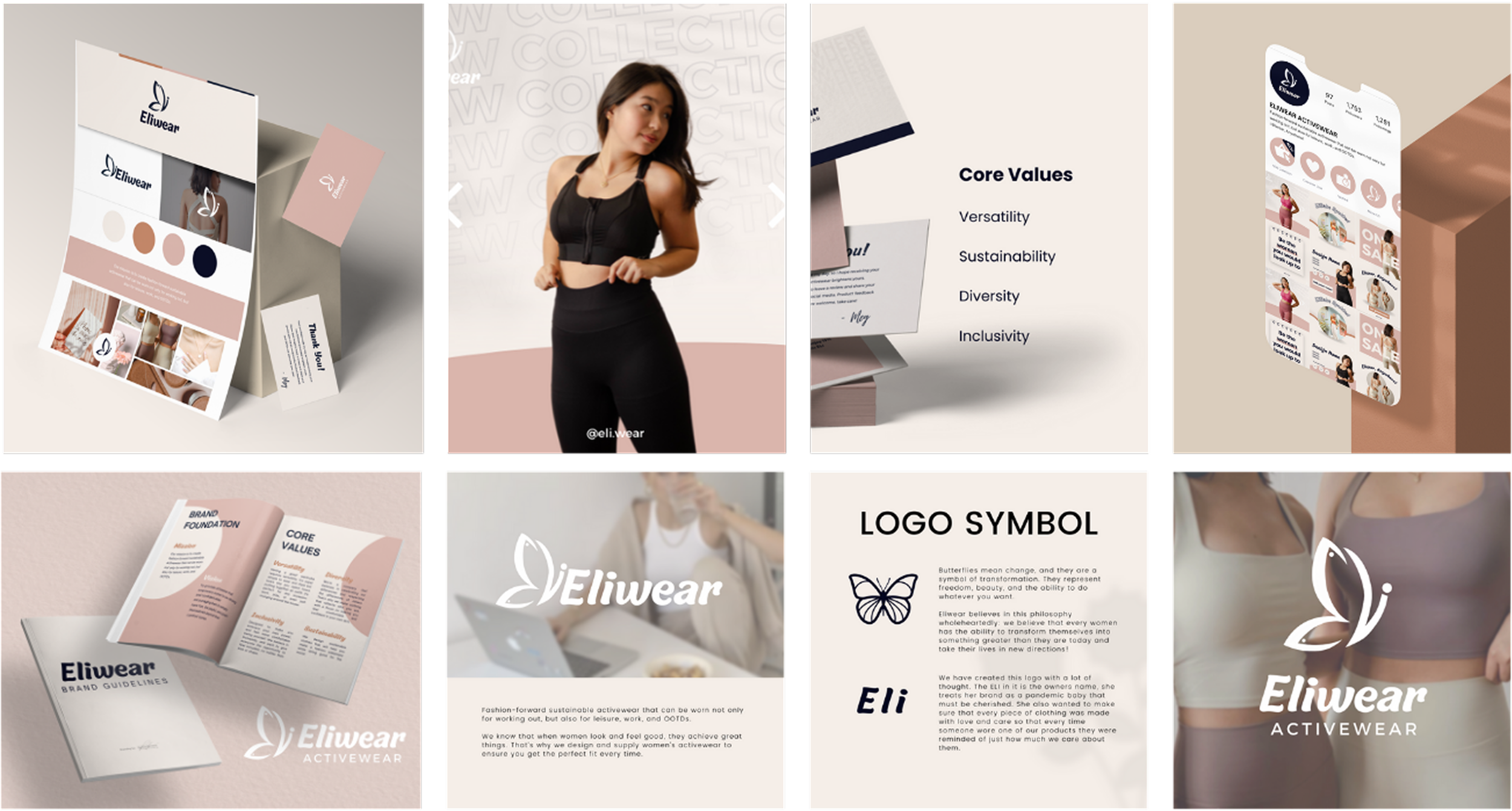 The client wants to position Eliwear, not the usual activewear they see on the market + they also want to stick with a brand design that they will follow consistently.